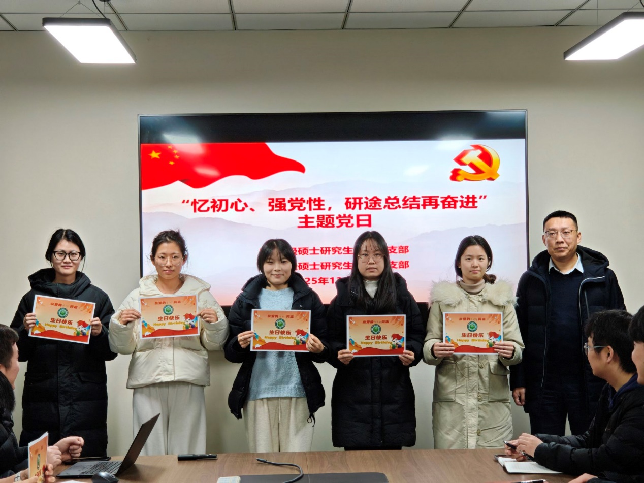 王凯充分肯定了2023级研究生党员在2025年度取得的成绩。他强调,重温入党誓词、为党员过“政治生日”,是基层党组织开展党内政治生活的重要方式。希望全体党员常思“当初入党为什么、如今在党做什么、今后为党留什么”,在实际工作生活中时刻以党员标准严格要求自己,自觉增强党性锻炼,充分发挥先锋模范作用。一要持续强化理论武装,特别是强化对党的二十届四中全会精神的学习,深入挖掘学科交叉点和新兴产业链,将其纳入个人未来发展规划中。二要做好个人学业规划和学术成果产出,把握好学位申请时间、流程和节点,制定、细化重点任务推进计划,统筹好学业进展与求职创业。三要积极关注人才供需动态和校内外招聘信息,主动拓展就业渠道和争取面试机会,将“小我”融入“大我”,到基层、西部、祖国需要的地方去建功立业。四要学会压力疏导与心理调适,加强与导师、辅导员、同学的沟通交流,主动关心关注自身和同学,共同筑牢校园安全稳定的屏障。
