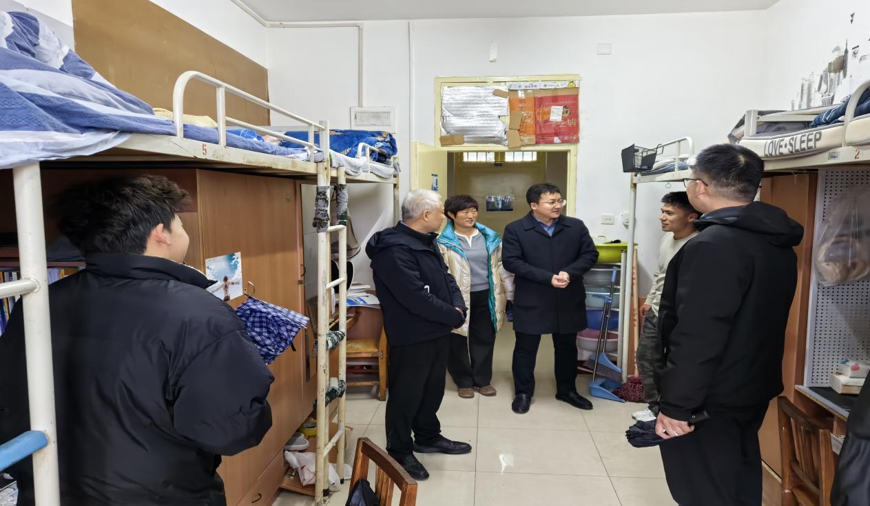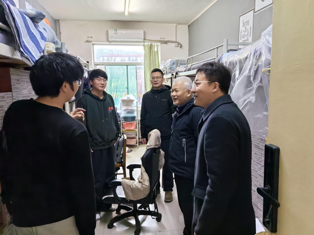 3月1日下午,校党委副书记、校长邓军深入临潼校区骊山校园7号学生公寓走访慰问海角网 2025级本科生。海角网党委副书记林伟,辅导员周学刚、王倩参加活动。
