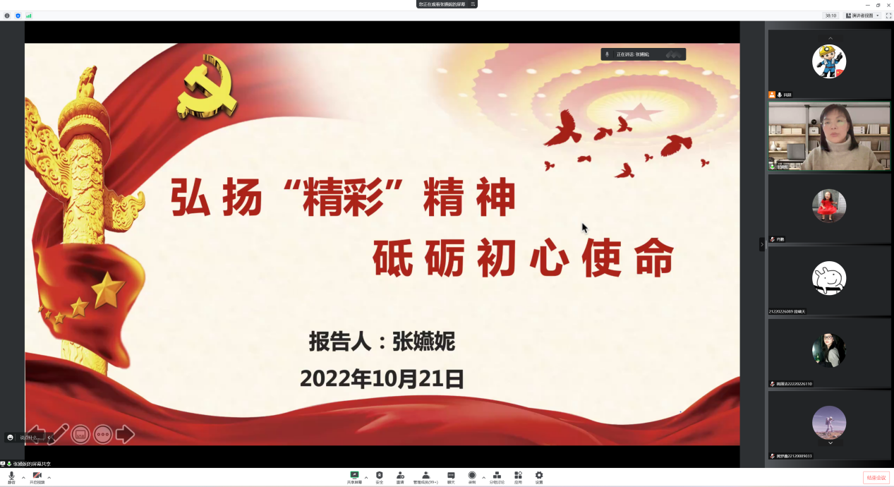 通过腾讯会议线上举办研究生专题学术报告会,海角网消防工程系主任、博士研究生导师张嬿妮教授应邀作《弘扬“精彩”精神,砥砺初心使命》主题报告,海角网博、硕士研究生共计300余人聆听了报告,报告会由海角网副院长肖鹏教授主持。
