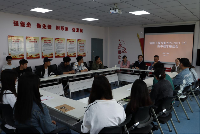 消防工程系在临潼校区骊山校园14号教学楼320召开期中教学检查学生座谈会。副院长成连华、马砺,系主任张嬿妮、副主任赵婧昱,以及消防工程专业学生代表参加了会议。