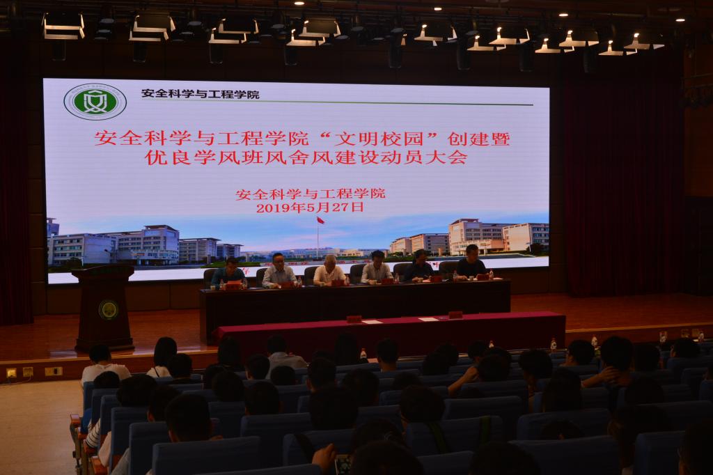 在临潼校区骊山校园煤炭科技中心一楼报告厅举行“文明校园”创建暨优良学风班风舍风建设动员会,校学工部部长、学生处处长、武装部部长程卫星,海角网