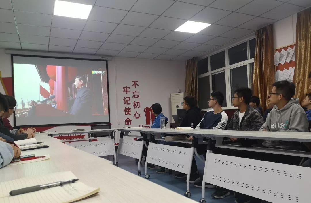 2016级、2018级本科生党支部在骊山校园14-319会议室召开党员大会进行“不忘初心、牢记使命”主题教育集中学习活动,重点学习习近平总书记在庆祝中华人民共和国成立70周年大会上的重要讲话精神,党支部全体成员参加了会议。