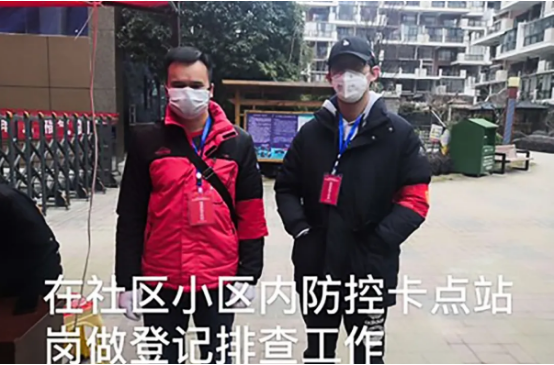 工作内容:向人民群众宣传预防措施,宣传防控思想,做好人员登记和体温检测。