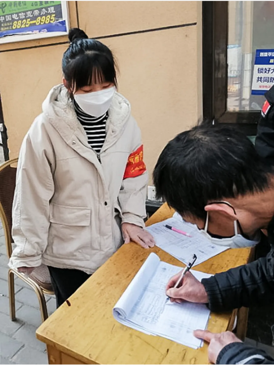 【她说】:今年,我过了一个特殊的寒假,面对疫情,作为入党积极分子,我积极参与到防疫志愿工作中。一个人的力量也许很渺小,但渺小的大多数力量汇聚起来便是江河!白衣天使们守护着我们大家,我们作为新青年也要义不容辞的守好我们每一个人的小家!社区也是我们的家,在社区志愿服务时,我看到每一个人都在积极的配合我们的工作,尽管天气寒冷,但我的心中很温暖,因为,我正在为祖国贡献出我自己的力量,希望我们每一个人都可以尽自己的一点力量,与祖国共渡难关!