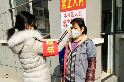 工作内容:对社区来往人员进行测量体温及登记信息。