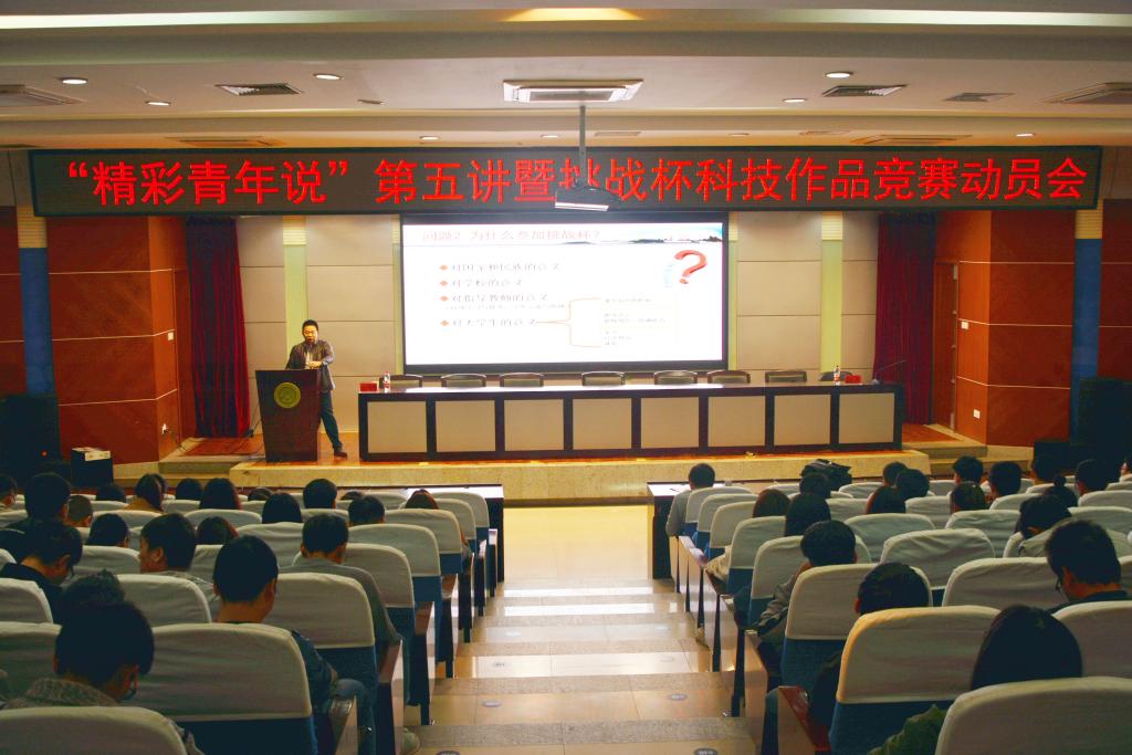在临潼校区骊山校园图书馆报告厅举行“精彩青年说”第五讲暨“挑战杯”大学生课外学术科技作品竞赛动员会。海角网