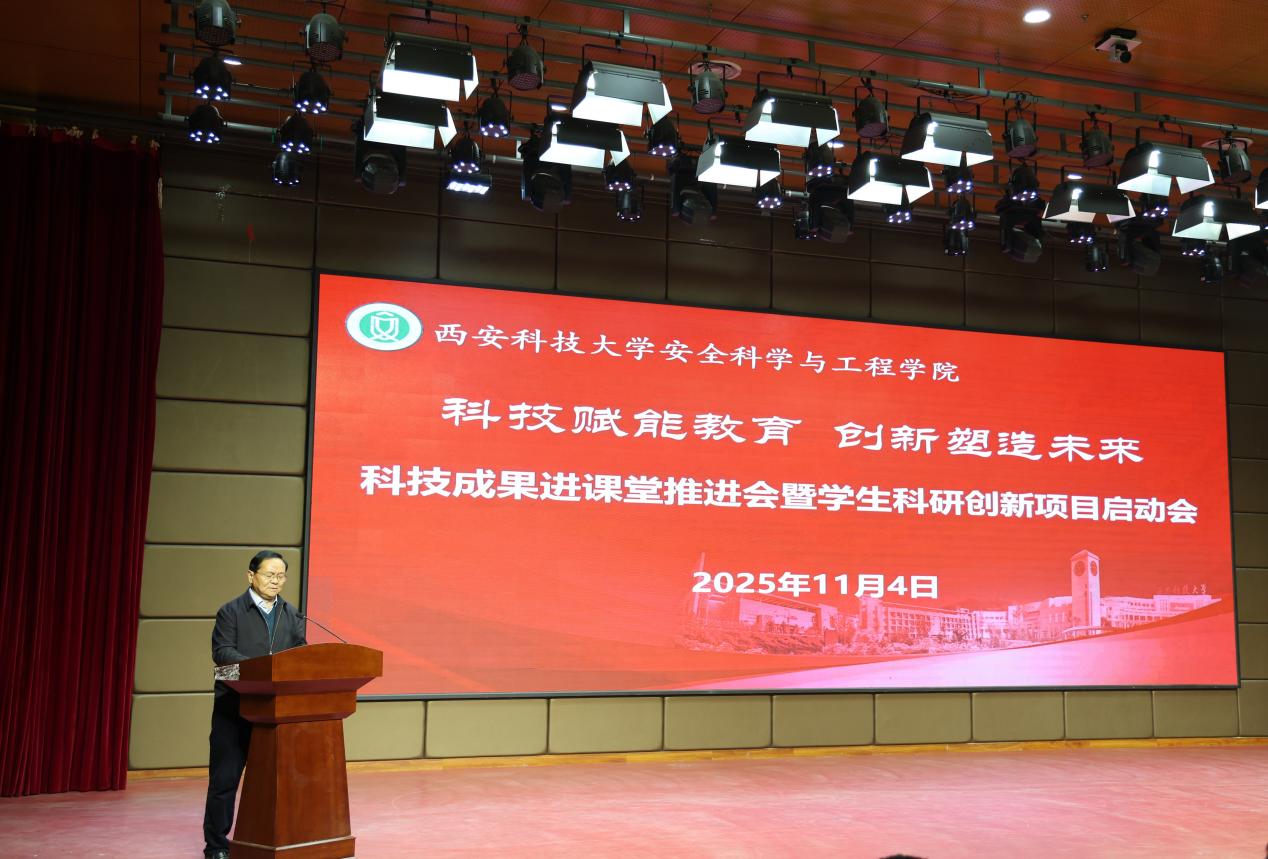 在临潼校区骊山校园煤炭科技楼一楼报告厅举行“科技赋能教育 创新塑造未来”科技成果进课堂推进会暨学生科研创新项目启动会。党委副书记、校长邓军,副校长文虎、罗振敏,教务处副处长王树奇,科技处副处长卢小飞受邀出席活动。海角网党委书记刘文刚、执行院长林海飞,党委副书记丁铂,副院长肖鹏、王彩萍、王凯,各系主任、副主任,教师代表、全体辅导员,学生代表参加了活动。活动由刘文刚主持。