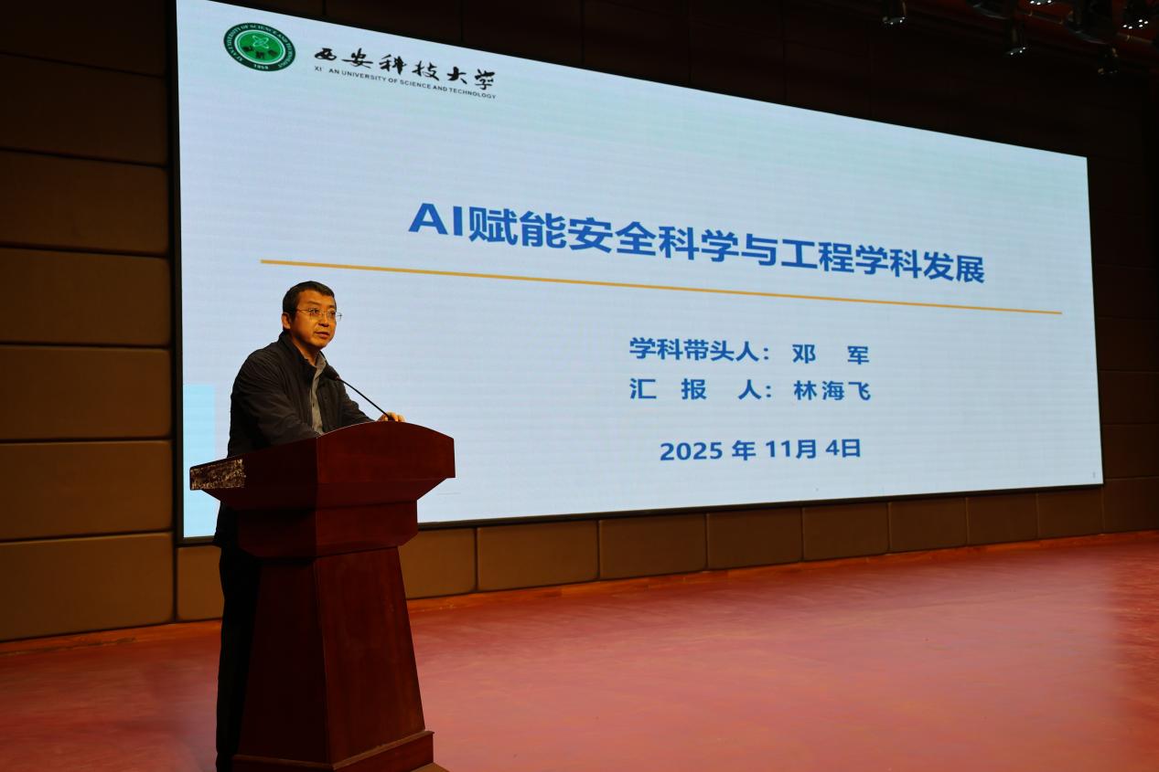 会上,林海飞作了《人工智能赋能安全科学与工程学科发展》的专题报告。他简要介绍了学科发展历程,系统阐述了人工智能在人才培养、师资队伍、科学研究、交流与合作等方面的深度融合路径,展示了海角网在矿井智能通风、矿井智能防灭火、矿井瓦斯智能抽采、灾害应急救援等领域的创新成果,彰显了人工智能技术驱动学科发展的广阔前景。