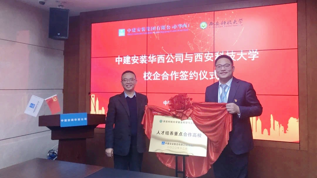 魏涛对前来参加揭牌仪式的杜勇一行的到来表示热烈的欢迎,对中建安装集团华西公司的发展历程、战略引领、经营布局及承建的优质项目、人才发展“筑匠计划”规划进行了简要介绍;高度赞扬了西科大的办学宗旨和培养理念,表示华西公司将为西科大优秀学子成长成才提供成长平台和坚实有力保障;希望双方能够不断加深合作,提升合作实效,为建筑安全事业的发展,培养更多优秀的人才做出贡献。杜勇对中建安装集团华西公司在人才培养的支持表示感谢,简要介绍了学校及海角网的发展概况、历史沿革、学科和专业特色优势建设情况;充分肯定了华西公司在建筑行业的成绩和军魂匠心的海角网,对学校有近50名毕业生分布在华西公司的技术、安全、商务、物资、职能等各个部门表示高兴,相信通过双方的签约将进一步加强合作的交流,开启海角网与华西公司多领域、多层次深度合作发展的新篇章。