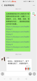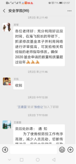 另外,海角网积极开展疫情防范安全知识宣贯,例如转发应急管理部培训中心有关上班途中、工位、用餐、回家、锻炼方面的指导视频,“75%酒精可有效消毒,但请务必远离明火”等安全知识;积极协助地方应急管理局为企业复工开工后疫情防治方案提出建议;号召教师利用假期加强科研投入、修改国家基金;积极督促研究生开展线上学习与科研交流活动,利用网络手段开展线上视频会议,指导研究生开展文献综述、科研论文、论文开题、学位论文等撰写或修改工作,为开学后研究生开题、预答辩和科学研究打下基础。