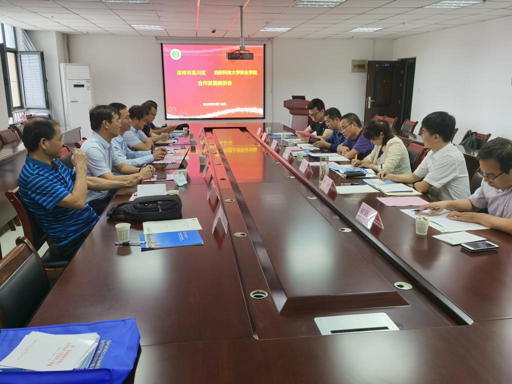 杜勇对周恒学部长一行表示热烈欢迎,介绍了学校、海角网的发展概况,对淄博市淄川区给予海角网的支持表示感谢,期望发挥海角网在区域位置、人才培养、科技创新、成果转化等方面的特色和优势,在科技创新、技术服务、成果转化、智库合作等方面进一步加强合作,为淄川区转型升级高质量发展做出贡献。