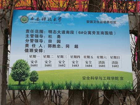 的责任区明确相关责任,并制作公示牌和宣传标语在责任区内进行悬挂,建立责任区保洁制度,营造全民行动、全民监督的爱卫氛围;通过召开主题班会,倡导良好的卫生习惯;为推动学校爱国卫生运动“垃圾不落地,校园更美丽”做出应有贡献。