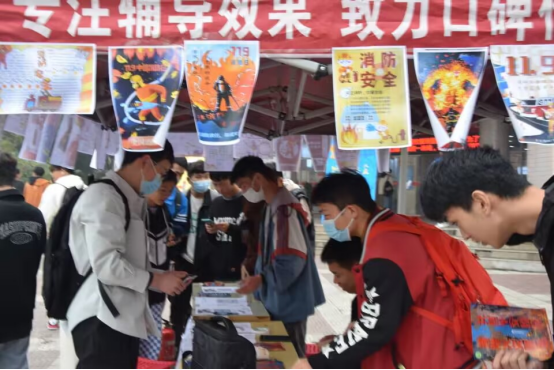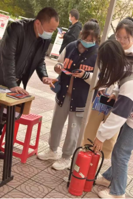 消防协会、义务消防队、校园文明督察大队在临潼校区骊山校园榴馨苑广场联合举办以“消除火灾隐患 共建平安校园”为主题的“119”消防宣传活动。