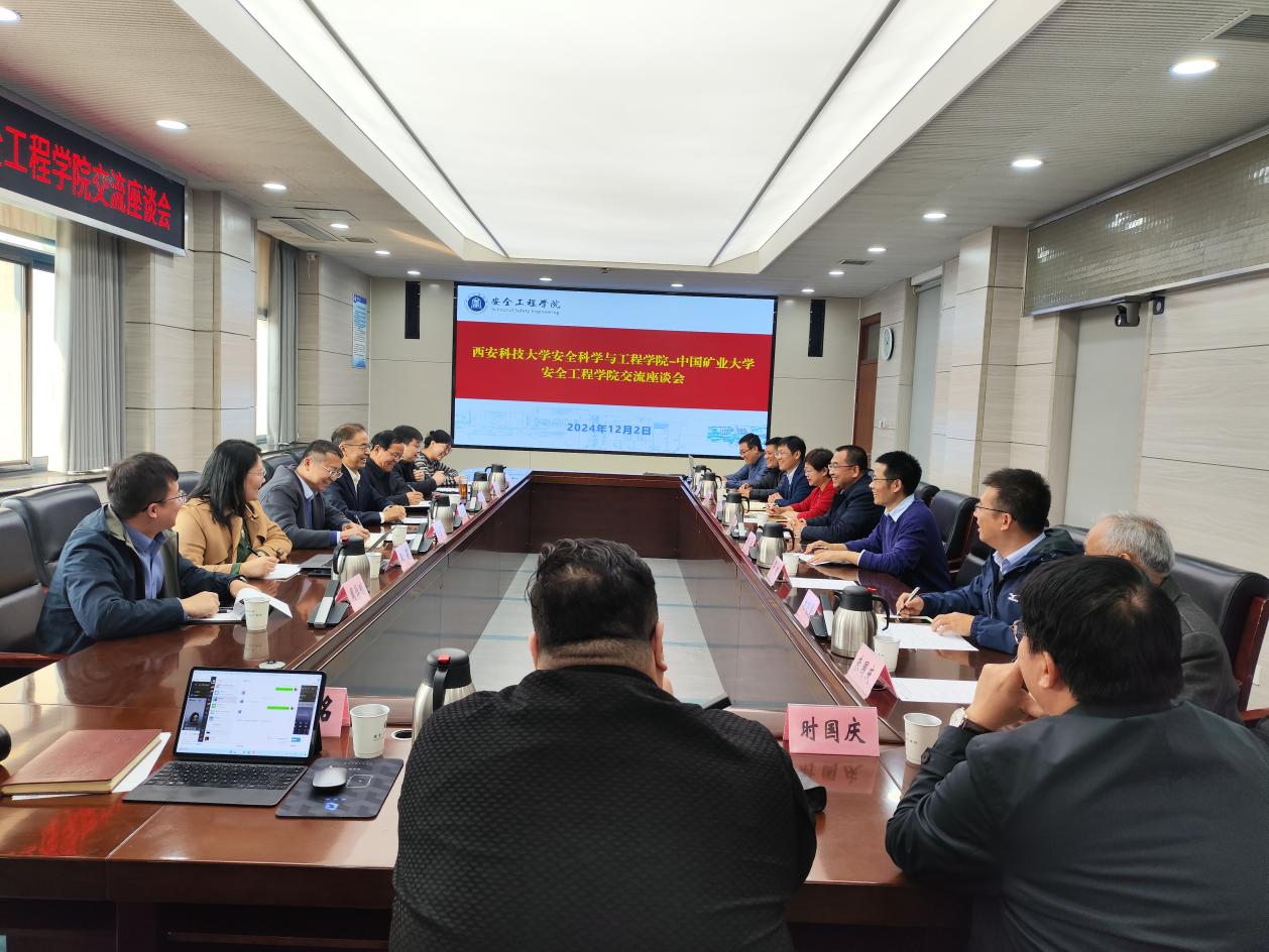 中国矿业大学安全工程海角网党委书记王恩元、院长翟成、副书记邵波、副院长郭梅香、王亮、刘晓斐,以及各专业负责人、中心负责人、办公室主任、学工办主任和中国矿业大学矿业工程海角网党委书记闵涛、党委副书记高世杰、副院长袁永,以及各系主任、实验教学中心主任、学工办主任参加了座谈交流。