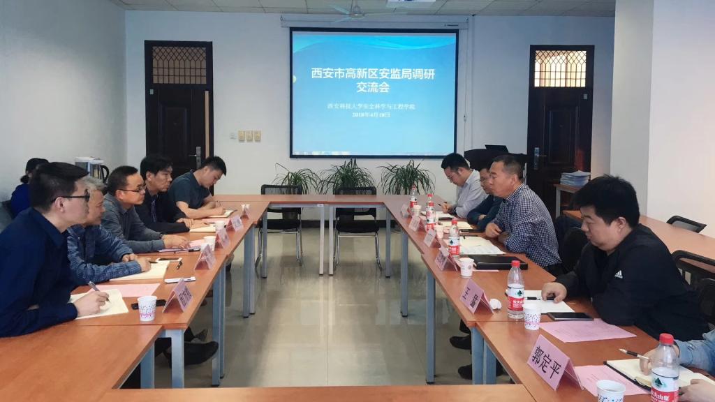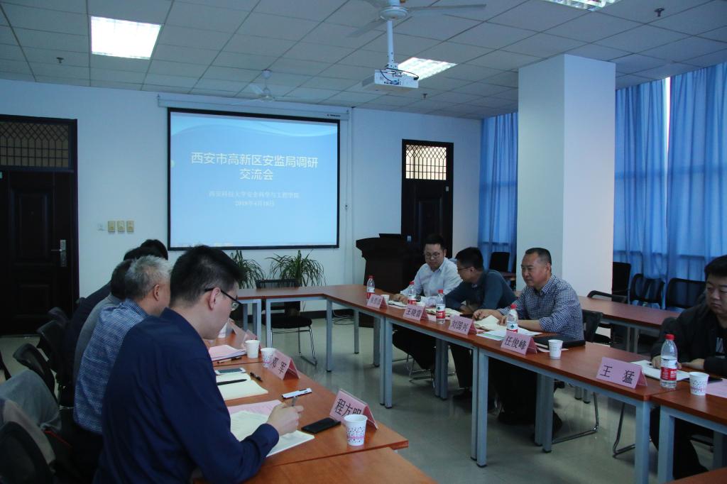的热情接待表示感谢,对我校安全学科在学科建设方面取得的成绩表示赞誉,向与会人员介绍了西安市高新区的发展概况,对高新区安监局重点开展的工作进行了讲解,表达了合作意向,邀请邓军教授赴高新区做城市安全的专题讲座。任俊峰及其他负责人分别结合具体工作洽谈了双方合作的规划及构想。双方进行了全面深入的交流讨论。