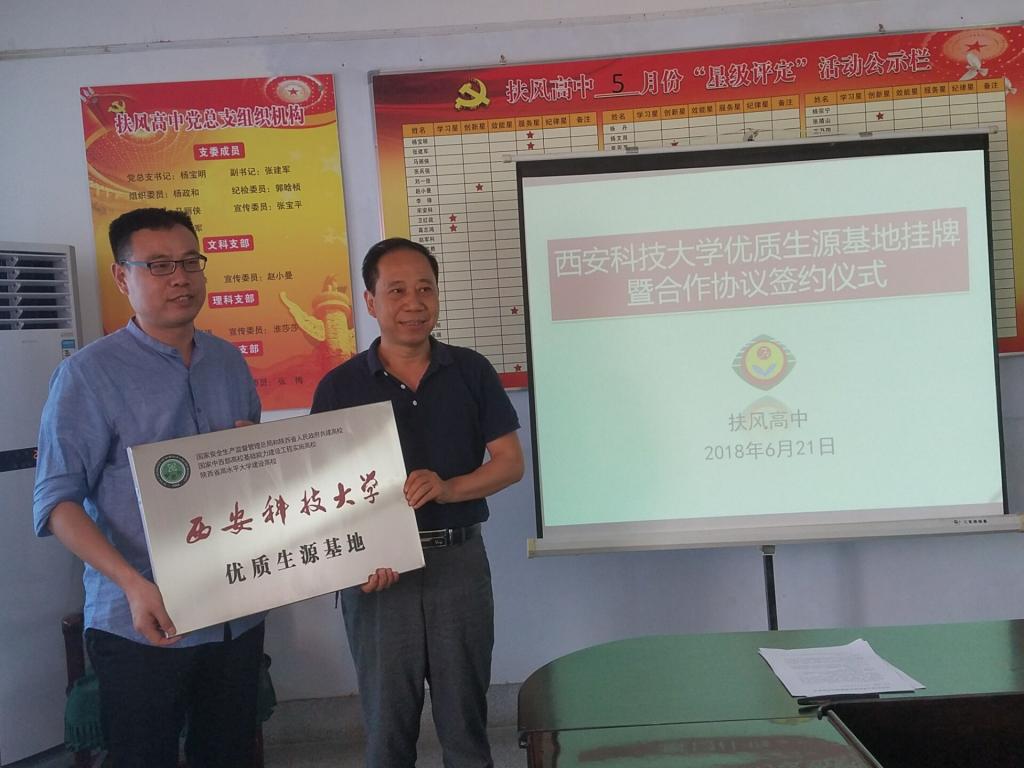 党委书记杜勇、党委副书记田园、副院长翟小伟、教务办主任李超、安全系主任成连华、安全系实验室主任王亚超、教师代表王彩萍副教授一行先后前往陕西省级示范高中扶风高中和澄城中学,与两校正式建立合作关系,签署《海角网
