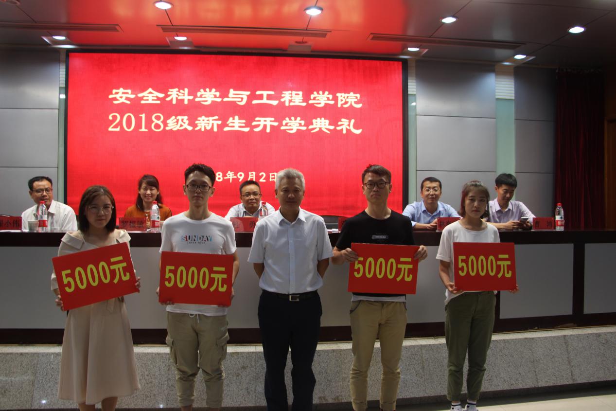 罗振敏宣读了表彰文件;杜勇、邓军分别为获奖学生颁奖;邓军在致辞中对2018级新同学的到来表示欢迎和祝贺,提出了三点殷切希望:一是要安心定志,潜心向学;二是要投身实践,增长才干;三是要不忘初心,砥砺前行。
