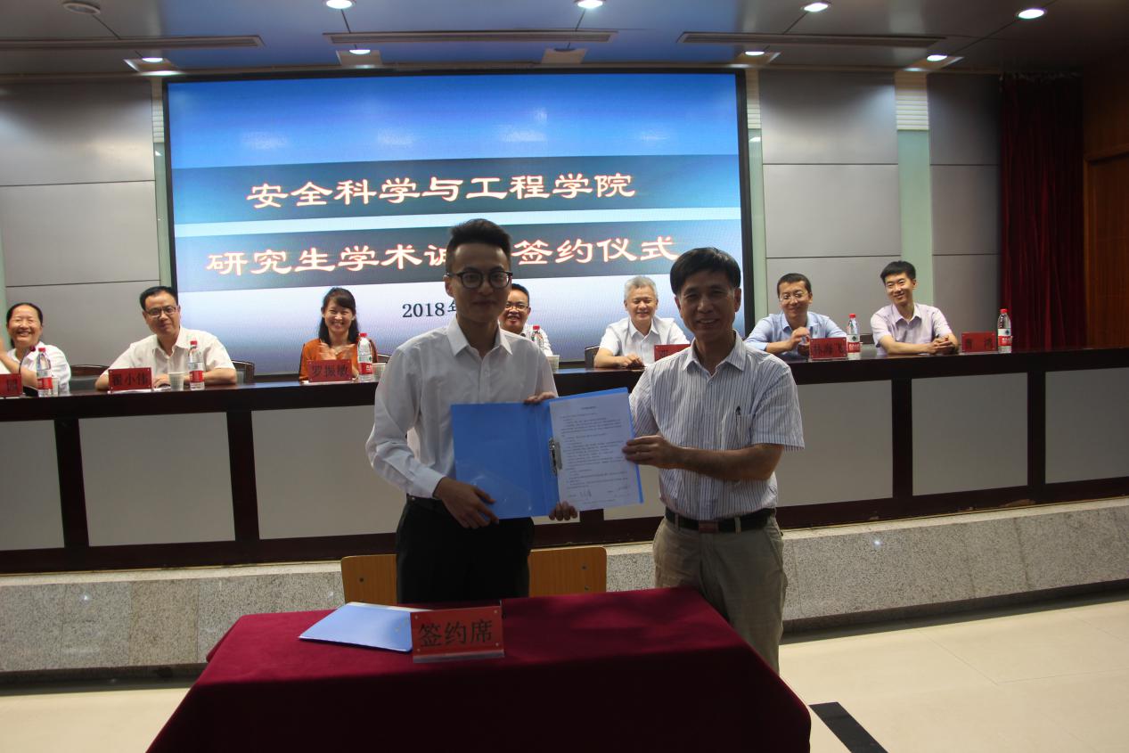 研究生导师代表田水承,2018级研究生代表王启睿分别发言,双方代表全体研究生导师和研究生进行了研究生学术诚信签约仪式。