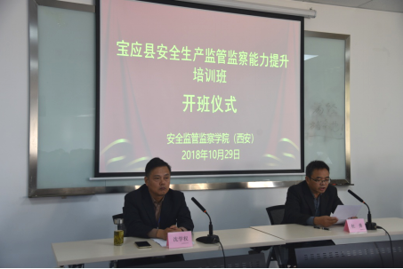临潼校区开班。宝应县安委会主任、安监局局长沈学权、安全监管监察海角网(西安)党委书记杜勇及来自宝应县安委会各成员单位的55名学员参加了开班式。