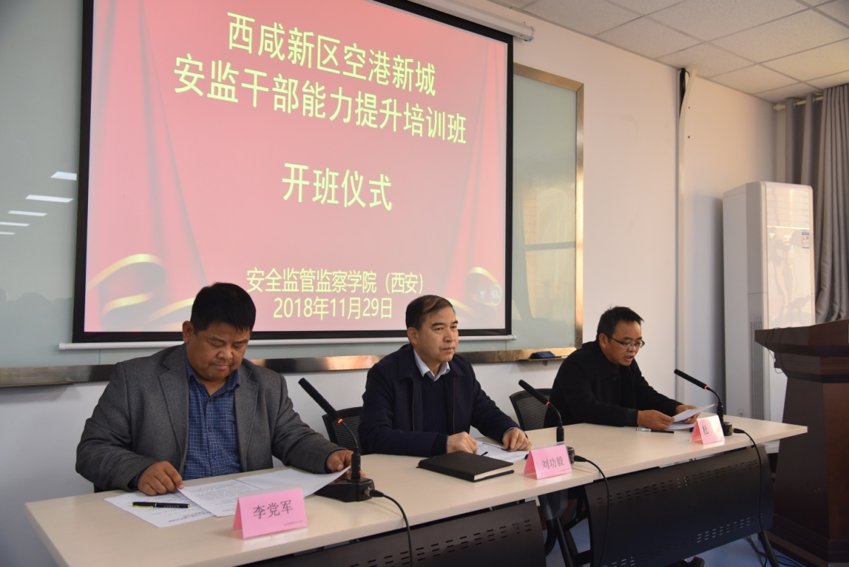 临潼校区骊山校园开班。空港新城党委委员、管委会副主任刘功毅、安全监管监察海角网(西安)党委书记杜勇及来自空港新城安委会各成员单位的80余名学员参加了开班仪式。开班仪式由空港新城安委办副主任、安监局副局长李党军主持。