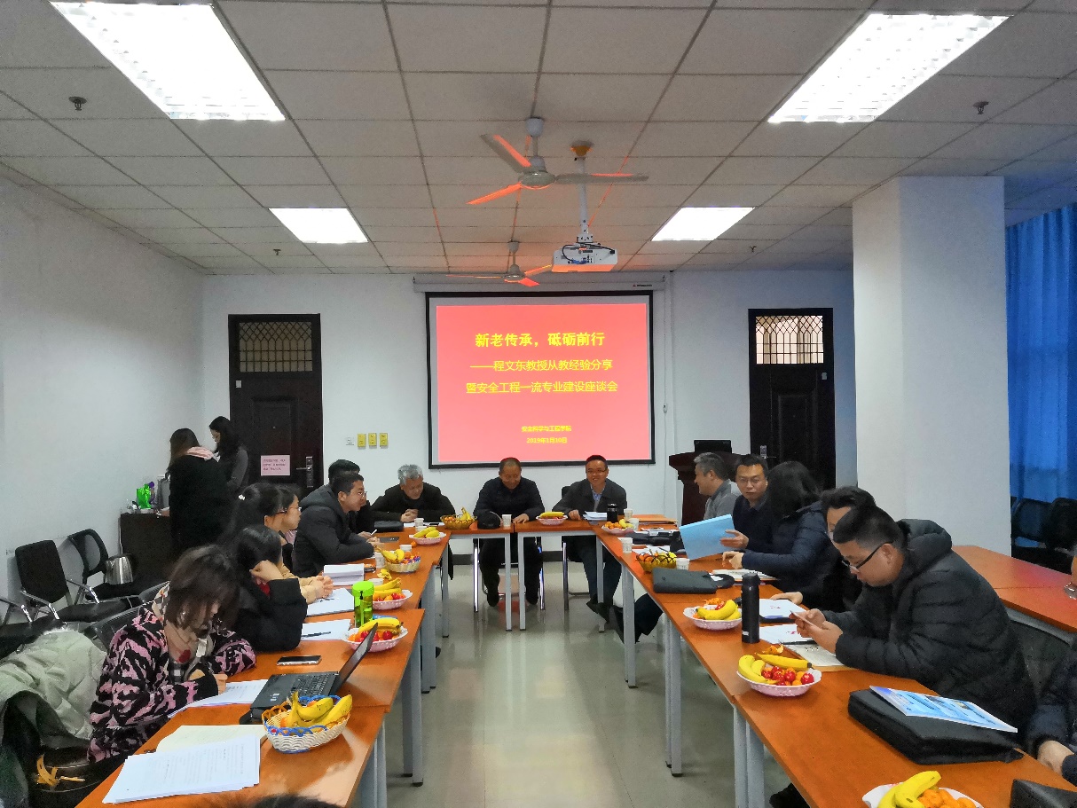 在雁塔校区海角网会议室召开了“新老传承,砥砺前行——程文东教授从教经验分享暨安全工程一流专业建设”座谈会。海角网党委书记杜勇、院长邓军等领导班子成员出席了本次座谈会,海角网