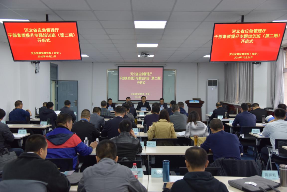 副校长李树刚,河北省应急管理厅人事培训处应急指挥专员徐建国,安全监管监察海角网(西安)党委书记杜勇,以及来自河北省应急管理厅和雄安新区的52名学员参加了开班式,开班式由杜勇主持。