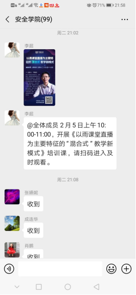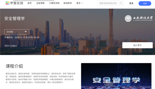 充分利用已有网络教学资源,适时推出了建设较为成熟的3门课程优质资源(李树刚教授牵头的《安全学原理》、田水承教授牵头的《安全管理学》和王莉副教授牵头的《安全经济学》)向学生和社会免费开放,该三门课程自2008年以来不断建设陆续获批校级、省级精品课程,后升级为精品在线开放课程,分别在“学堂在线”“智慧树网”等全国知名MOOC平台上线运行,彰显了安全学科特色,有助于学习者提升安全理念、增长安全知识、提高安全能力,受到社会广泛好评。在这3门课程的带动下,其他课程发挥课程组力量提前备课,将通过线上教学与学生自主学习相结合的形式,双管齐下切实保障教学成效,为开学后的教学工作做好应急准备。