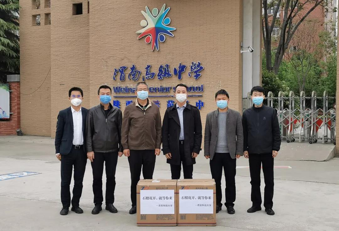 渭南高级中学是我校优质生源基地,我校与该校建立了长期友好合作关系。据悉,该校将妥善利用这批口罩,确保我校的爱心之举落到实处。
