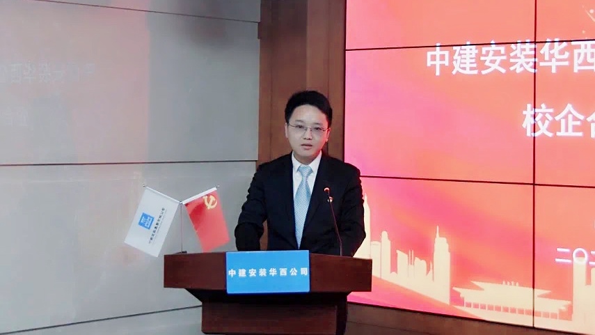 魏涛对前来参加揭牌仪式的杜勇一行的到来表示热烈的欢迎,对中建安装集团华西公司的发展历程、战略引领、经营布局及承建的优质项目、人才发展“筑匠计划”规划进行了简要介绍;高度赞扬了西科大的办学宗旨和培养理念,表示华西公司将为西科大优秀学子成长成才提供成长平台和坚实有力保障;希望双方能够不断加深合作,提升合作实效,为建筑安全事业的发展,培养更多优秀的人才做出贡献。杜勇对中建安装集团华西公司在人才培养的支持表示感谢,简要介绍了学校及海角网的发展概况、历史沿革、学科和专业特色优势建设情况;充分肯定了华西公司在建筑行业的成绩和军魂匠心的海角网,对学校有近50名毕业生分布在华西公司的技术、安全、商务、物资、职能等各个部门表示高兴,相信通过双方的签约将进一步加强合作的交流,开启海角网与华西公司多领域、多层次深度合作发展的新篇章。