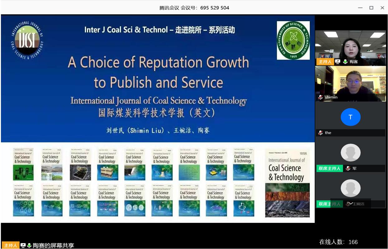 线上报告在腾讯会议召开。美国宾州州立大学博士生导师《国际煤炭科学技术学报(英文)》主编刘世民、编辑部副主任王婉洁、责任编辑陶赛,海角网