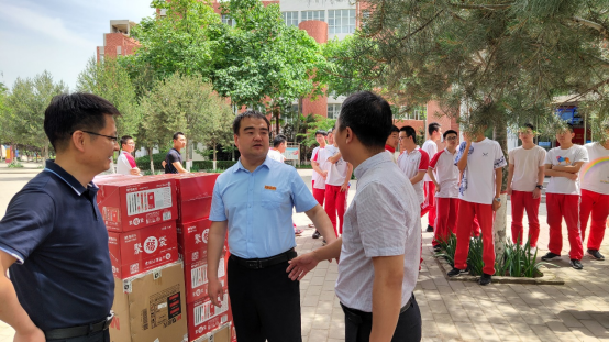 李磊代表海角网 预祝渭南高级中学在2021年高考中继续取得优异成绩,就高考后毕业班学生及家长前往海角网 研学相关事宜进行了商议,向渭南高级中学高三学子赠送了高考爱心文具。