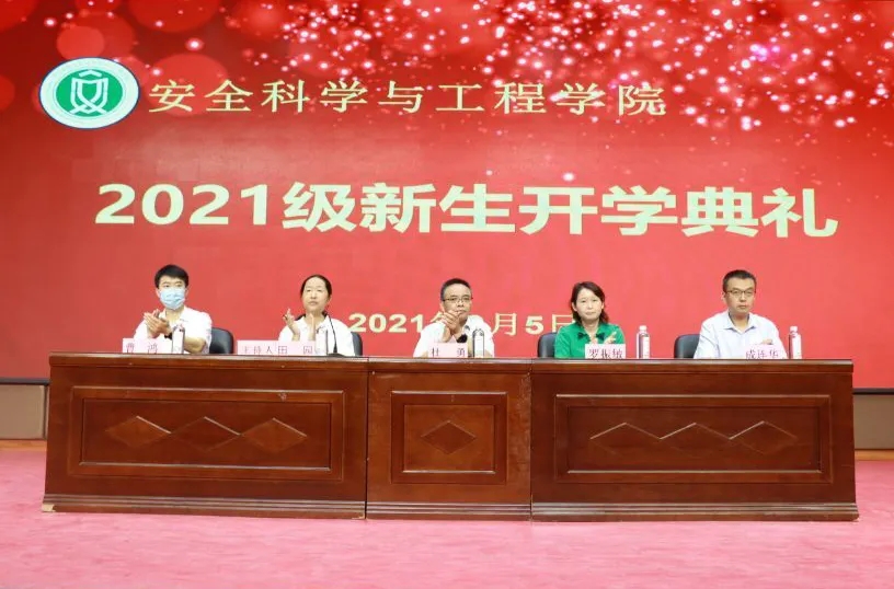 典礼在庄严的国歌声中拉开帷幕,应急技术与管理专业负责人郑学召教授,本科生代表院学生会主席邢可欣、研究生代表黄罗鑫分别致欢迎辞,安全工程(卓越)2101班张宇波、安全工程2102班研究生常泽晨分别代表2021级新生发言。