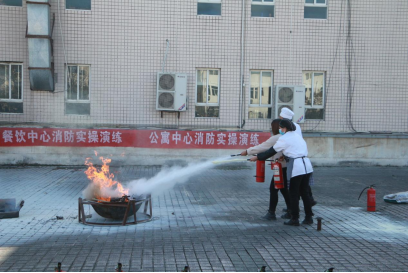 此外,消防协会的成员还参与了校园餐饮中心和公寓中心对工作人员的消防知识普及和消防实操演练。演练前,校保卫处老师为大家讲解“四懂、四会”等消防常识,同时也演示了灭火器的使用方法。