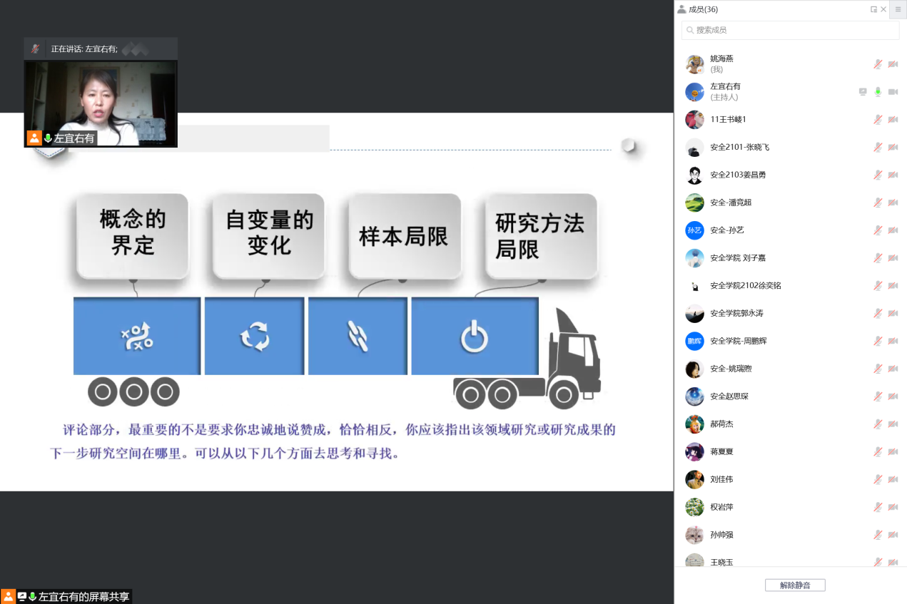 老师向同学们讲解的写作综述的方法、要求和问题,使同学们受益匪浅,获益良多。向同学们反复强调的学术道德准则,也为同学们的研究工作划出了明确的底线。