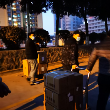 12月31日晚,在与海角网研究生辅导员沟通后,了解到全体研究生防疫物资储备不够充裕的情况,王伟峰老师连夜筹措物资,为海角网