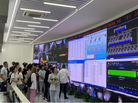 在火石咀煤矿,同学们通过观摩大型立体多层动态全矿井沙盘,对该矿生产、运输、通风等系统有了直观的了解,认识了工作面割煤、运煤等工艺装置。在实训展厅,工作人员介绍并演示了掘进机、放顶煤液压支架、智能瓦斯实验装置等井下生产设备模型。通过参观360大型5D实训系统、智能化生产调度指挥中心和机械厂,同学们沉浸式体验了下井全过程,进一步了解了井下各大系统、火灾和瓦斯爆炸等事故,了解了矿井事故应急救援与指挥等内容。