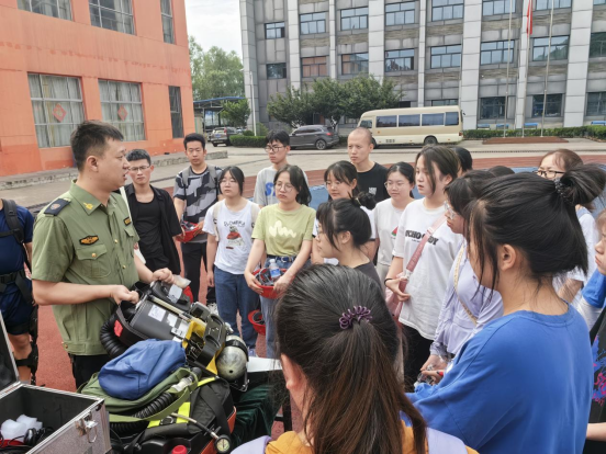 华彬煤业救护中队担负着抢救彬煤公司所属矿山遇险遇难人员,处理矿山灾害事故,参加矿井排放瓦斯、震动性放炮,反风演习和其他需要佩用氧气呼吸器作业的安全技术性工作任务。中队副队长徐建超以矿井水灾事故救援演练视频为引,详细讲解了应急演练的定义、目的、类型、组织与实施情况等内容,为同学们作了一场精彩的《应急演练》专题报告。中队队员张强省详细介绍了“ZYX60型隔绝式压缩氧自救器”,并通过现场演示以及让同学们亲身体验自救器的佩戴过程,让大家对自救器的使用有了更深的了解。在中队队员的带领下,同学们一起参观了救护队的技术装备室,近距离观察学习各类救援装备,收获颇丰。
