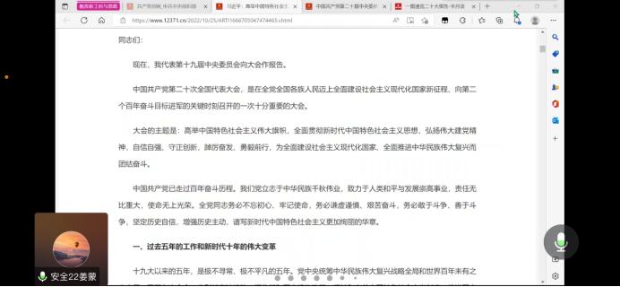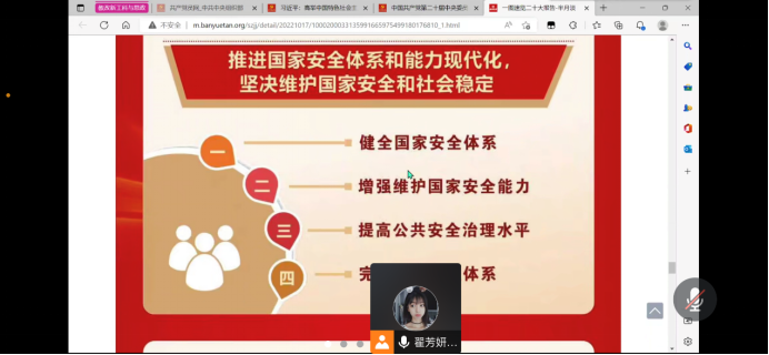 2022级硕士研究生党支部通过腾讯会议,组织全体党员学习党的二十大精神。会议由支部书记翟芳妍主持。