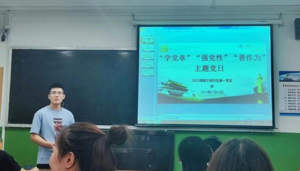 2022级硕士研究生第一党支部在雁塔校区北院教学主楼303教室开展“学党章、强党性、善作为”主题党日。会议由支部宣传委员董哲主持。