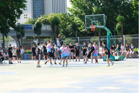 上午8时,在简短的开幕式后,比赛正式开始。抢球、传球、投篮,队友间紧密配合,记分板上的数字不断上涨。场内球员注意力高度集中、奋力拼抢、运球突破,展现出不屈不挠的精神和团结协作的作风。场外啦啦队员的呐喊加油声环绕球场,激发着每一位球员的斗志。球员们昂扬的斗志、精湛的球技和默契的配合,饱含着对篮球的热爱和对未来的向往。